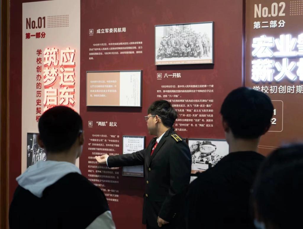 活动伊始,两校学生在相关负责老师的带领下,共同参观了中国民航大学校史馆,深入了解了中国民航史以及中国民航大学发展历程和“立足民航,服务社会,面向世界”办学宗旨。我校国护队员们深深感受到在筚路蓝缕中我国民航事业发展的艰难与不易、成就与辉煌。