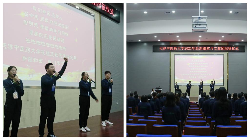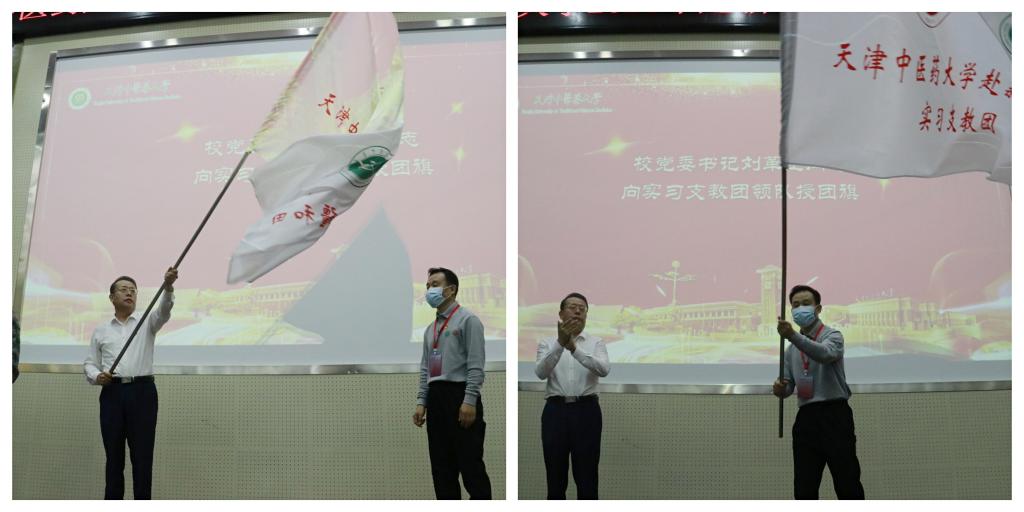 会上,校党委副书记刘怡蔓同志宣读了《关于成立天津中医药大学赴新疆实习支教团的决定》,并宣读成立支教团临时党支部的决定,校团委书记张晶同志宣读了成立支教团临时团支部的决定。表示要发挥好党组织的核心领导作用和团组织的生力军作用,有组织、有纪律、更高效地完成本次支教任务,期望支教团认真工作,恪尽职守,勇于奉献。
