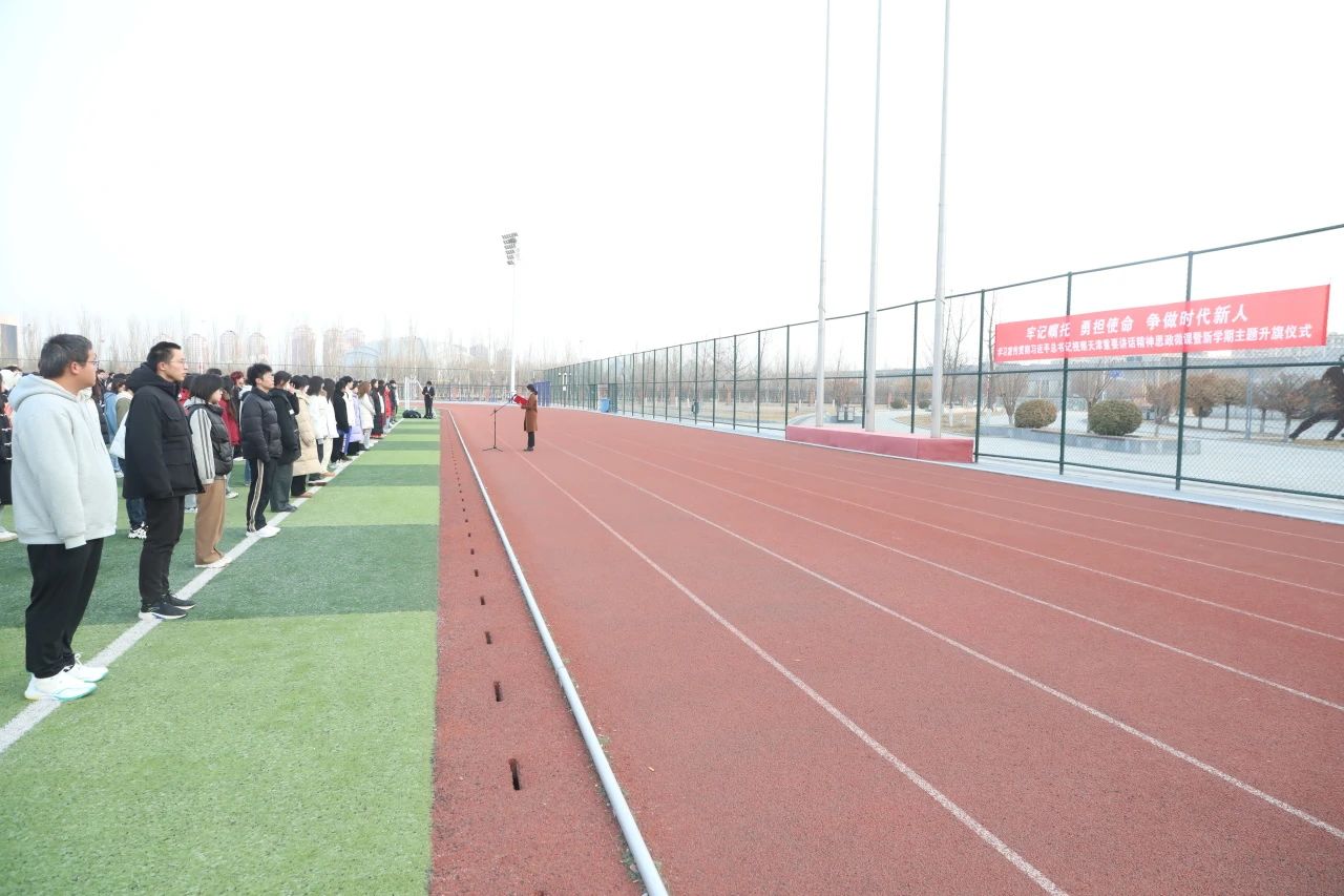 为学习宣传贯彻习近平总书记视察天津重要讲话精神,推动习近平总书记视察天津重要讲话精神入脑入心、深入人心、落地生根,让广大天中学子充分认识学习宣传贯彻习近平总书记视察天津重要讲话精神的重大意义、精髓要义和实践要求,准确把握“四个善作善成”的重要要求。党委学工部于3月4日清晨,在新学期开学之际开展“牢记嘱托 勇担使命 争做时代新人”学习宣传贯彻习近平总书记视察天津重要讲话精神思政微课暨新学期主题升旗仪式,党委学工部部长东晓明、副部长王楠,党委研工部副部长阎丽娟、马克思主义学院思政课教师李申淼以及各二级学院辅导员老师、学生党员与学生骨干代表,勇搏励志班、少数民族预科班、校国旗护卫队学生等共计650余人参加了本次活动。