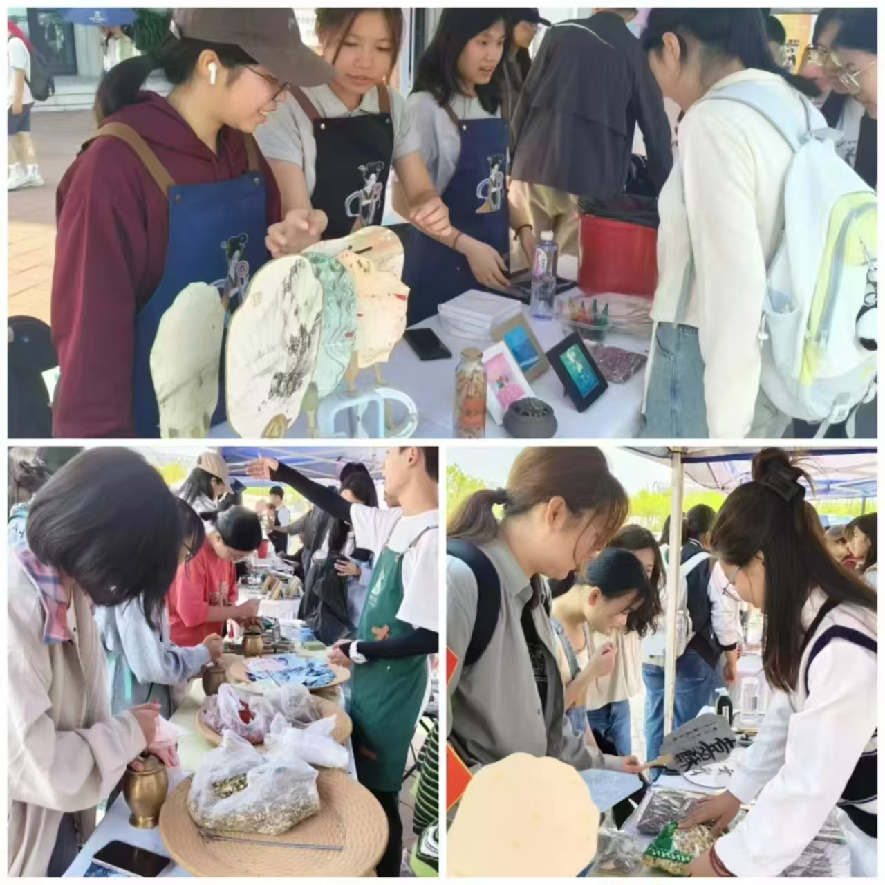 9月24日,我校在东区大学生活动中心门前举办了“金秋丰收忙,青圃蔬果香”丰收节集市。集市售卖区展示了“杏林青圃”劳动教育基地的玉米、花生、大葱、韭菜等农作物,由各学院学生现场售卖,学校老师积极参与购买,对同学们的劳动表示肯定与支持。集市技能体验区提供了包玉米、摘花生等互动项目,让师生们亲身体验劳动的乐趣。同时,我们还开设了“精诚至臻,劳育岐黄”中医药专业劳动体验区,包括香囊制作、药画制作、药物标本制作、中药材碾制等环节。参与者们在动手操作中感受到了中医药文化的独特魅力,进一步领悟了劳动精神的内涵。