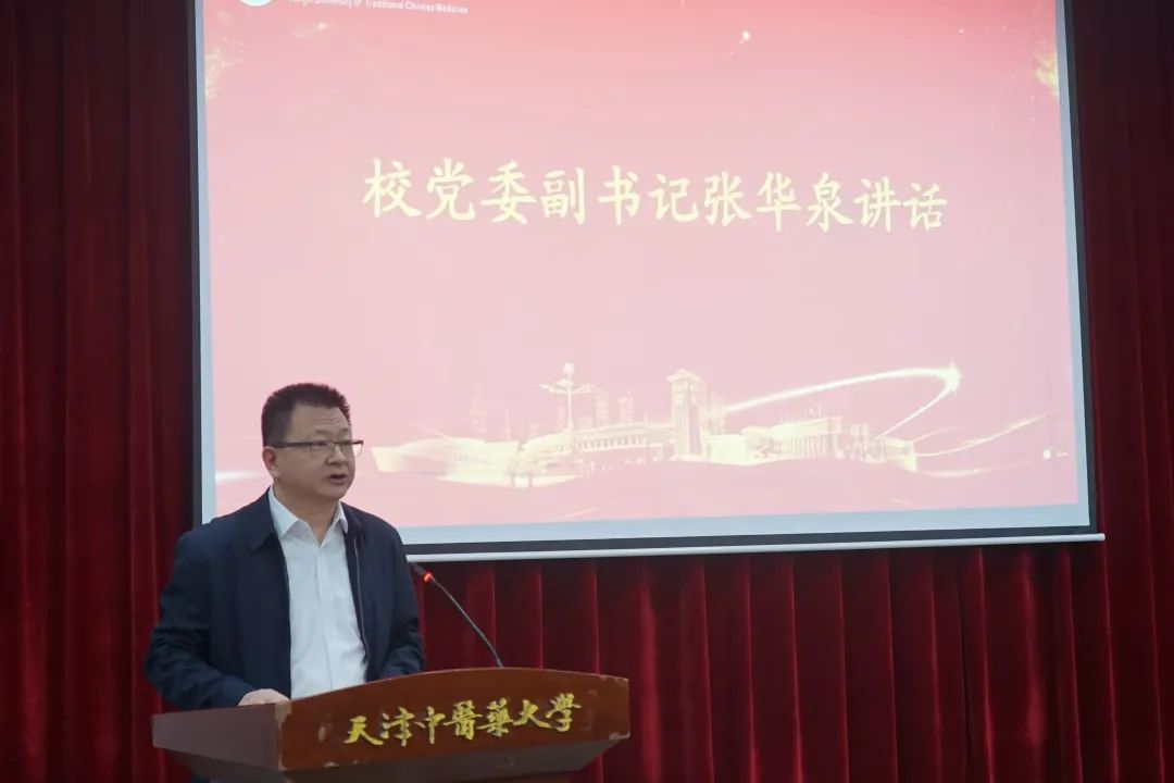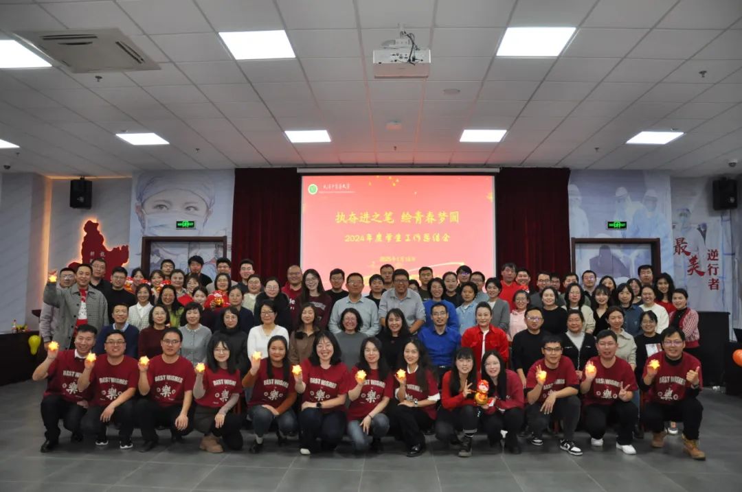 校党委副书记张华泉发表讲话。他充分肯定了学工队伍2024年在思政教育、学生日常管理服务和队伍建设等方面取得的丰硕成果。这一年,学工队伍奋发进取、矢志笃行,取得一系列成绩。开展“开学第一课”、“丹桂飘香迎华诞,守正创新勇担当”庆祝中华人民共和国成立75周年主题升旗仪式等思政类活动125场。举办勇搏励志班建班十五周年主题展览及总结大会,凝练育人经验、拓展育人平台。开拓网络思政教育新局面,“天中学生之家”“天中青年”等学生网络育人平台年度累计推文615篇,全年累计阅读量68.1万,学生关注人数增加1.5万。举办第二届“涵雅尚美”美育文化节等系列文艺活动20余场活动,覆盖2万余人次。建设“杏林青圃”劳动教育特色基地,开展农作物的种植养护等工作,组织丰收节等系列活动。积极探索导学思政育人模式,开展“导学全家福”拍摄、“导辅协同 师生共进”素质拓展等活动,形成研究生育人合力。我校学工队伍在本年度获评市级及以上各类荣誉22项。“医心怡意”辅导员工作室获批第二批天津市普通高等学校辅导员工作室。坚持实行“五个促就业”专项行动,毕业生毕业去向落实率稳步提升。百余名学生获评各级各类市级及以上荣誉。组织开展“感知中国”等各类大型留学生实践项目和传统文化活动,留学生荣获获得国家级三等奖1项,市级一等奖2项,市级三等奖1项。校友会成立后组织毕业30年、40年校友活动,得到广大校友好评。