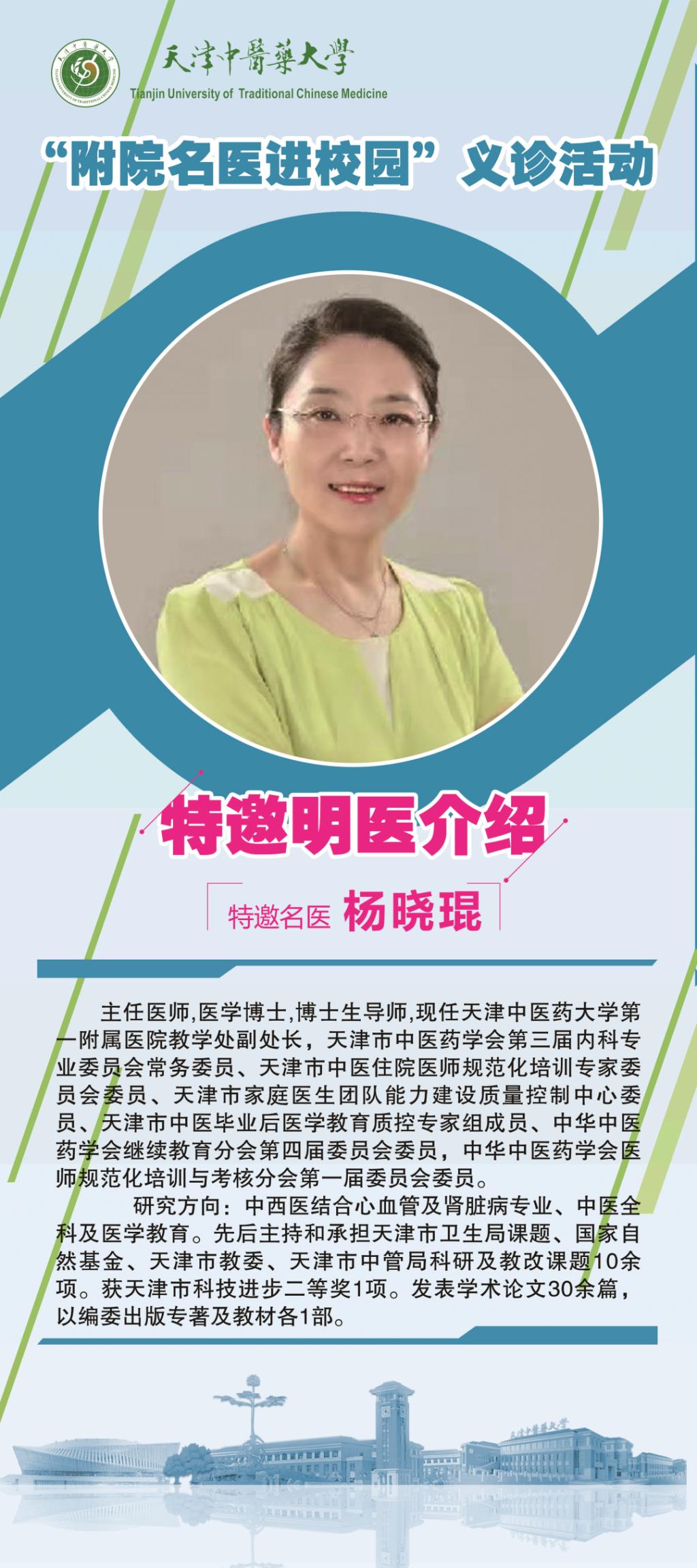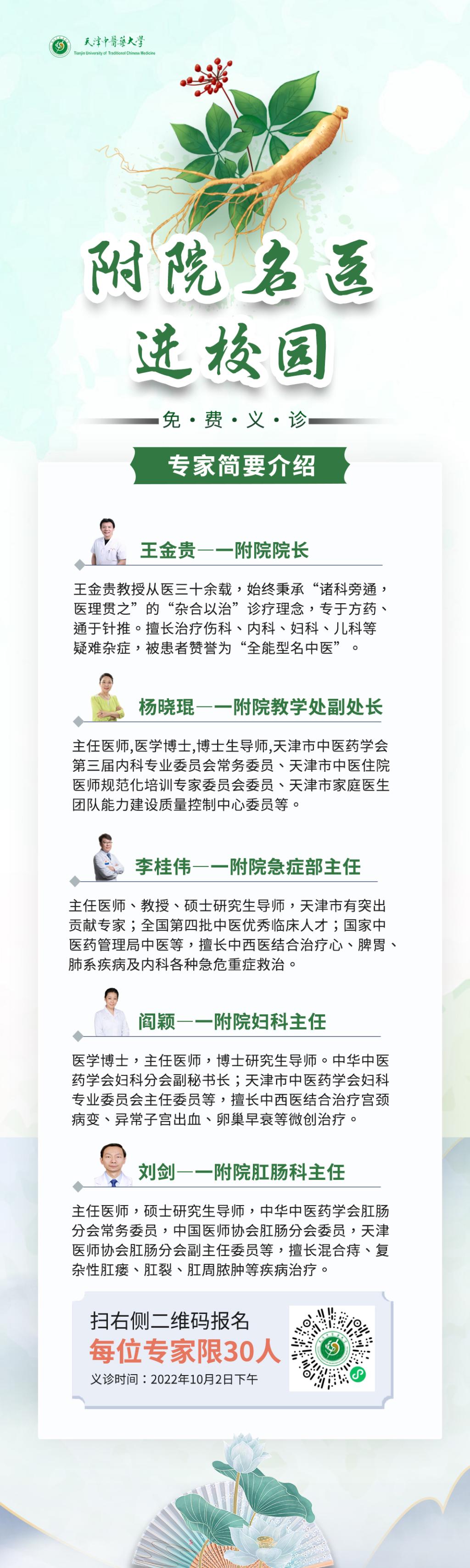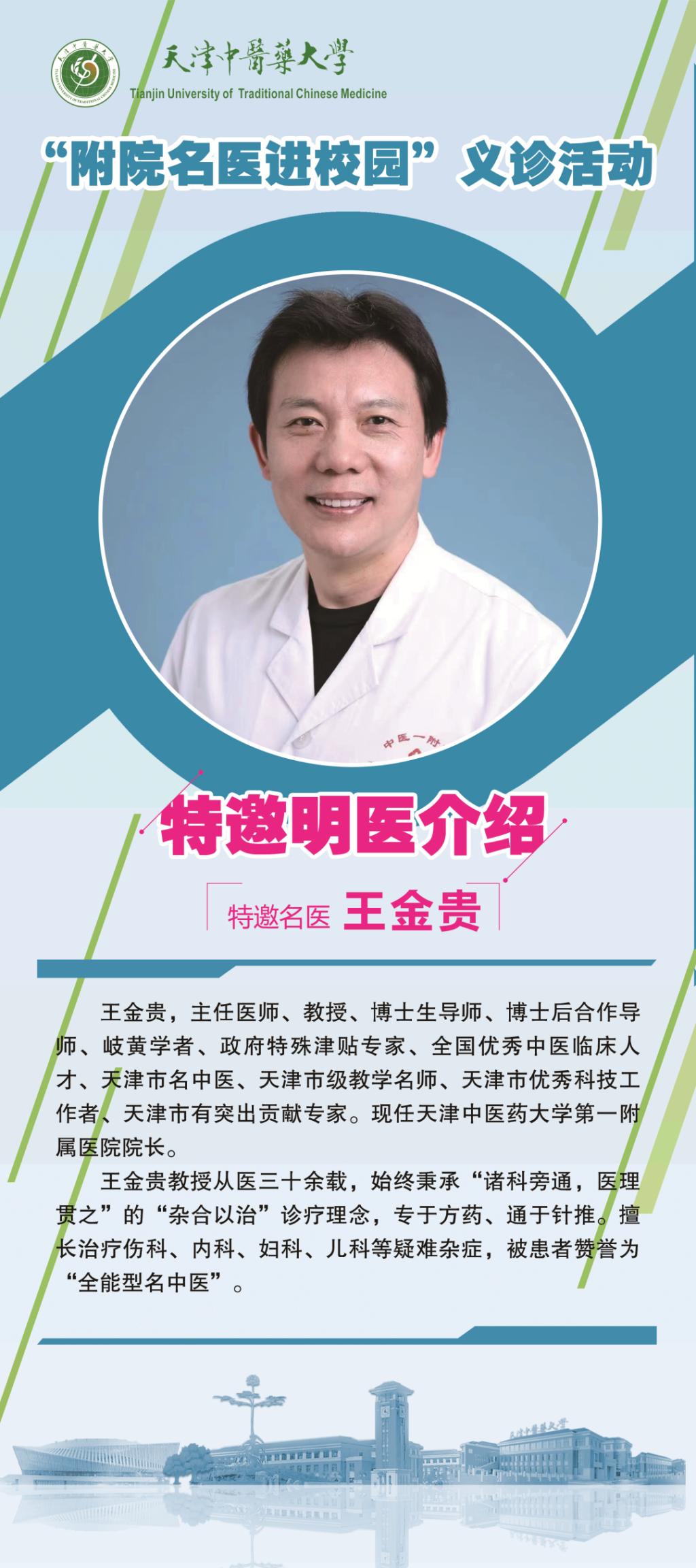在当前常态化疫情防控背景下,为满足我校学生就医需求,在国庆节期间,我校将启动“名医进校园义诊活动”,并将结合学生需求定期举办。本期名医进校园活动,我校邀请到了由天津中医药大学第一附属医院王金贵院长领衔的专家组入校,为同学现场义诊。本次活动也得到学校多部门大力配合支持!我校附属医院派出专家提供诊疗支持,校党委学工部组织设计预约程序,现场组织学生就诊,学校医管处予以协调统筹,学校校医室提供设备保障,实训中心提供了义诊场地支持!让我们携手为广大天中学子平安健康保驾护航!