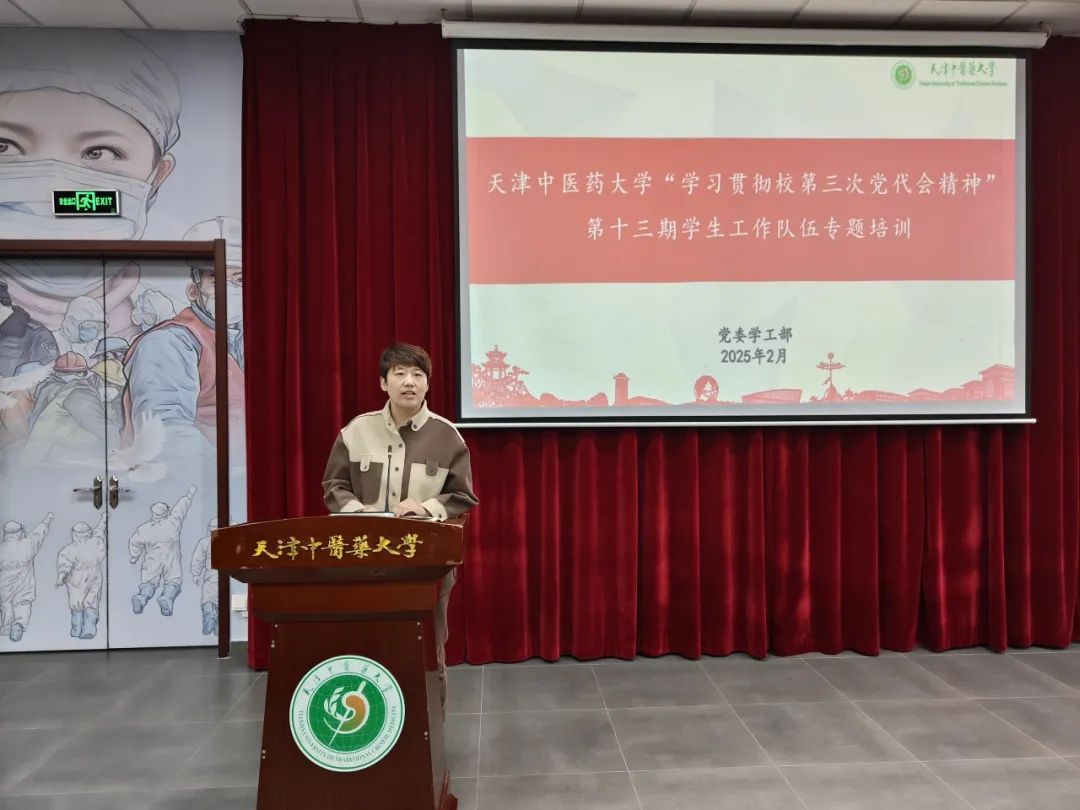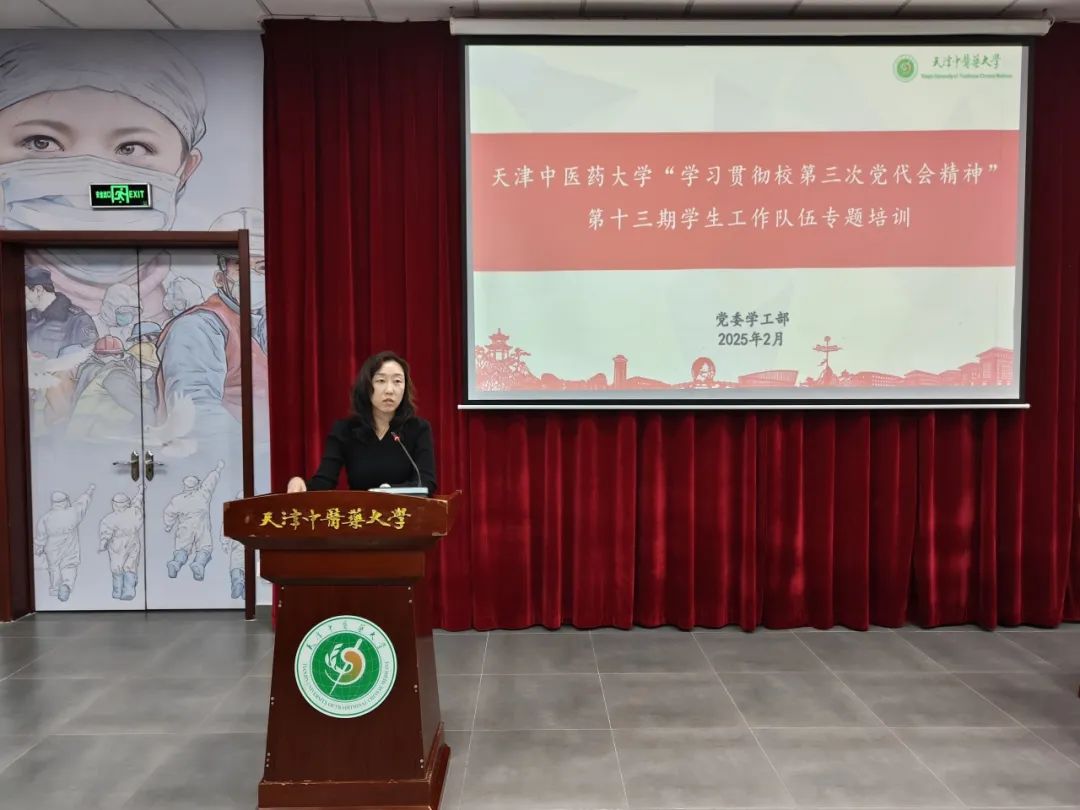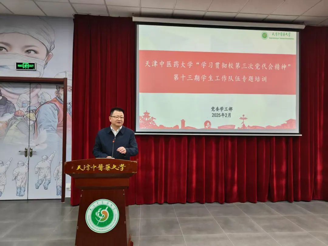 第十三期学生工作队伍专题培训是全体学工队伍对学校第三次党代会精神的一次集中学习,张华泉副书记在开班仪式上强调,全体学工队伍要以本次培训为契机,深刻领会校第三次党代会精神的核心要义,立足岗位做到三点要求:一是“凝心铸魂”,强化思想引领,当好学生成长成才的引路人;二是“敢想敢拼”,勇于改革创新,成为攻坚克难的开拓者;三是“善作善成”,注重实效落实,争做事业发展的实干家。他号召全体辅导员以饱满热情投入新学期工作,在学校建设高水平中医药大学的征程中贡献学工力量。