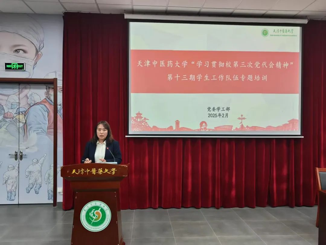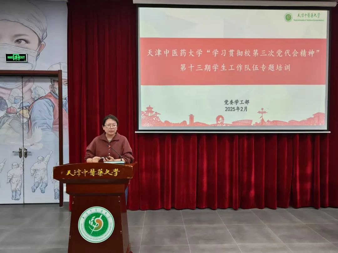 党委学工部部长东晓明、党委研工部部长耿晓丽、校团委书记张晶分别就2025年度春季学期重点工作进行部署,围绕思想引领、学风建设、就业创业、心理健康、日常管理、学生奖助、实践活动等提出新学期具体任务要求,要求全体学工队伍以校第三次党代会精神为指引,高质量推进学生工作改革创新,更好地服务高水平中医药大学建设。