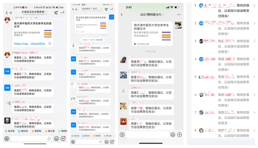同学们积极响应倡议书号召,通过班群接龙等方式主动反馈