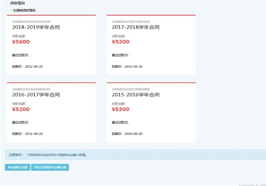 2、如出现下列情况:退学,休学,降级,延读,转专业,请学生尽快与当地教育局联系更改信息,如更改不了,则需要正常确认。如已经还款,也须进行毕业确认。