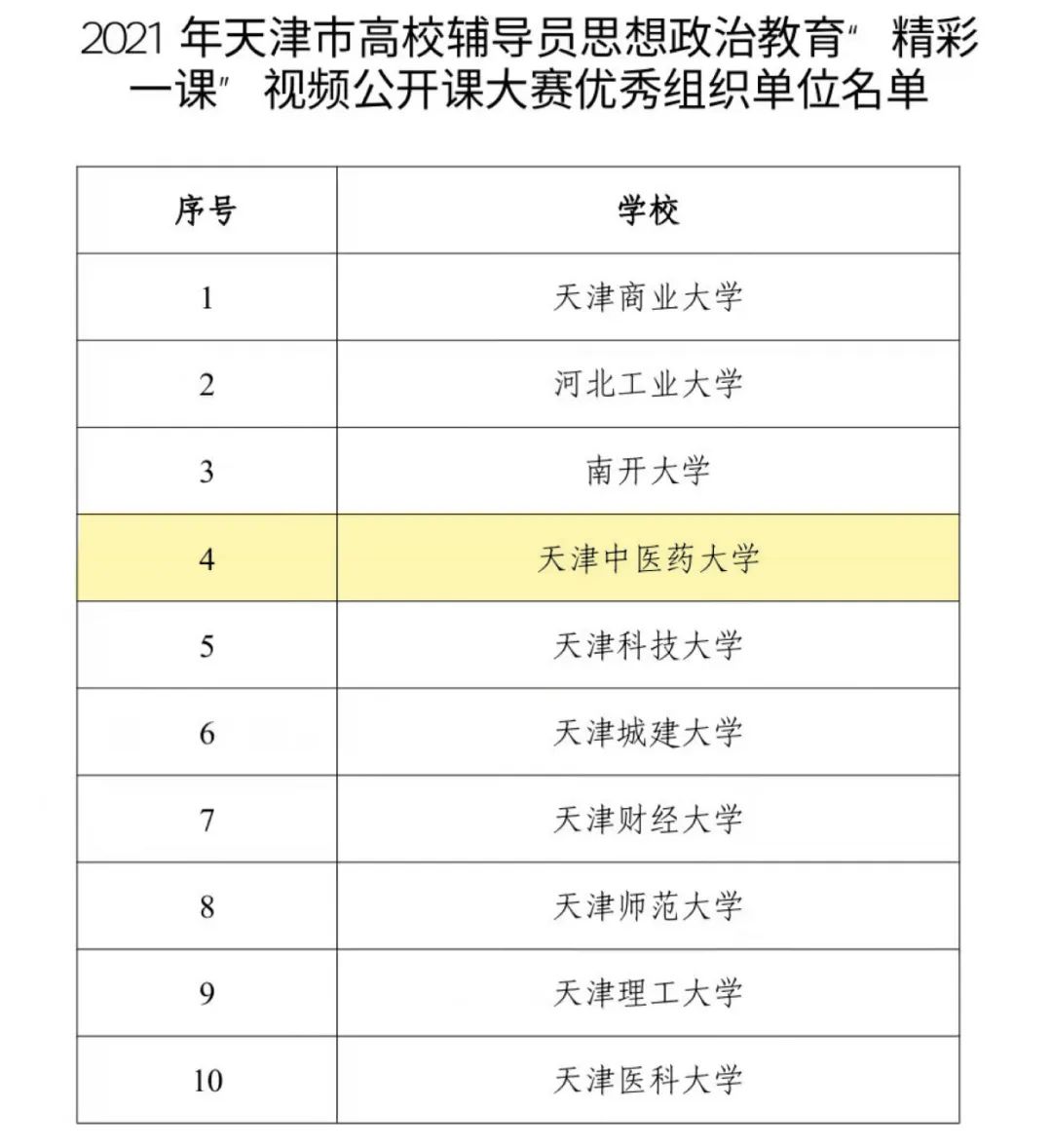 为学习贯彻习近平新时代中国特色社会主义思想,深入推动“三爱”“四史”教育,着力提升思想政治教育亲和力,直面现实问题,切实答疑解惑,推动高校辅导员做好大学生政治思想的引领者,做好大学生成长成才的助力者,做好大学生健康安全的守护者,市教育两委举办了2021年天津市高校辅导员思想政治教育“精彩一课”视频公开课大赛。本次大赛中我校荣获一等奖一项、三等奖一项、优秀奖两项,同时获评优秀组织单位奖。