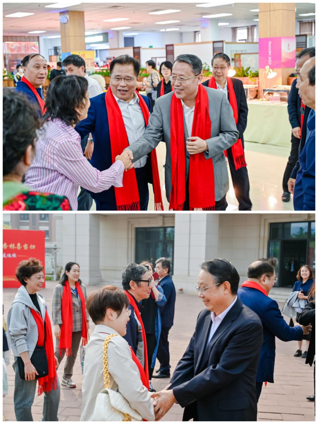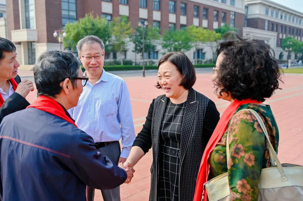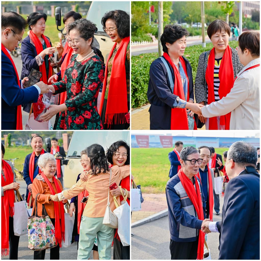 早上九点半,1978级校友准时在新校区西门集结,游览了如意药岭、产学研院区、天圆地方广场,并重返了毕业院系——中医学院。他们互相拥抱,仿佛又回到了那段充满青春朝气的“青葱岁月”,红色的围巾,将心与心相连,情与情相系。虽然时光已过去四十年,但校友钱聚义还是亲切地说:“过去的时间抹不掉我们与天中的记忆,我们的心始终与天中紧密联系在一起,看到天中建设得越来越好,一种自豪骄傲感油然而生。”
