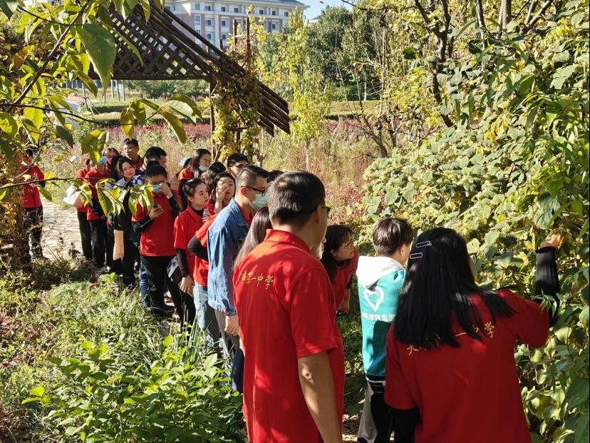 本次活动形式多样、内容丰富。中药学院“墨话本草”药山讲解团队学生讲解员带领天津一中教师分两条线路走进如意药岭参观实践,学生讲解员们就植物名称、中药故事、植物特征等进行了生动讲解,并引经据典、结合生活为参观教师进行中医药知识普及。随后在勇搏励志班志愿者的带领下,分别参观人参广场、钟楼、本草世界等校园特色文化景观;在中医学院学生志愿者带领下进入脉诊实训室,体验现代脉诊仪;在体育健康学院学生志愿者带领下,观摩了“二十四式简化太极拳”并认真学习相关招式;在“顾歌娇姿”创业团队学生带领下体验完成手工制作香囊的过程。