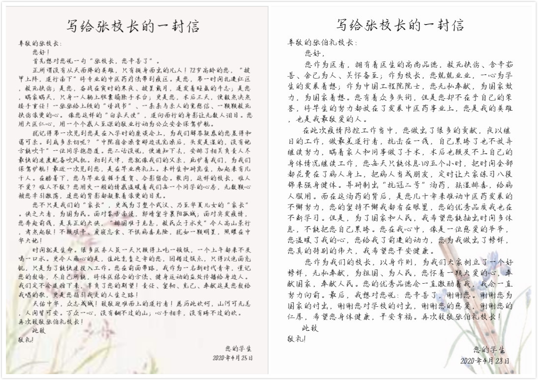 “‘云’中谁寄锦书来”——同学们以情撰“文”,用书信和诗篇传达对张伯礼校长等抗疫英雄逆向而行、舍己为人的崇敬之情和美好祝愿,立志以校长为榜样为国为民、行医济世;“战疫心声,共盼春归”——同学们通过讲述心情故事、美文朗诵表达抗疫期间的心路历程、成长感悟及战“疫”必胜的信心;“齐心防疫,弘扬文化”——同学们以绘画、手工艺品等艺术形式科普疫情心理调适知识,描绘对生命的感悟及对未来美好生活的期待;“一心抑疫,守望花开”——同学们通过拍摄Vlog和心理微电影记录抗疫居家学习生活,展现健康积极的生活方式和精神面貌;“直面疫情,挑战自我”——同学们通过体能锻炼比拼,增强抗疫体魄,释放学习压力,协调身心健康发展,为复学复课做好准备。